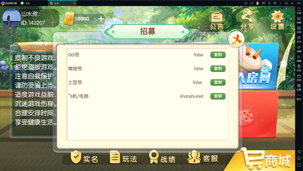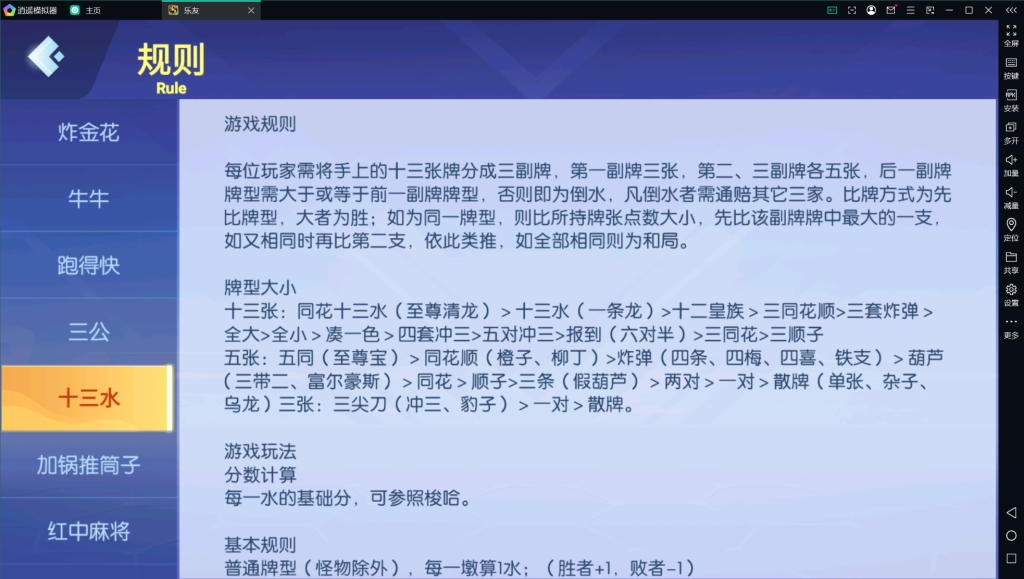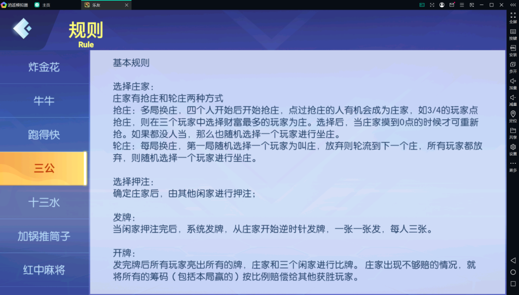 内含游戏:金花,牛牛,跑得快,三公,十三水,加锅推筒子,红中麻将