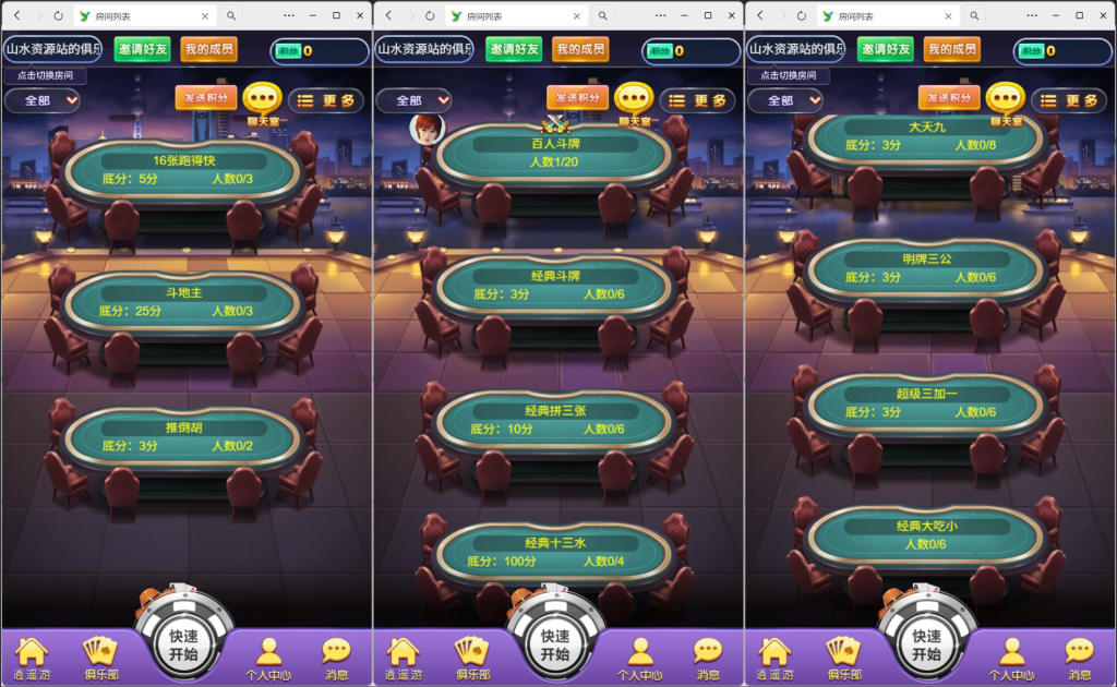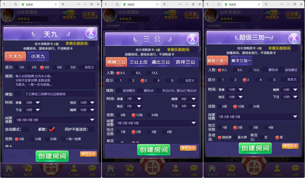 官方版来的,功能很强大。只要了解房卡的都懂这套的含金量,程序无加密无授权。俱乐部功能完善,积分玩法房卡玩法双模式,具体自行看图吧。